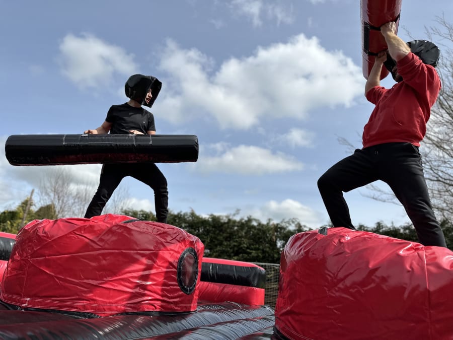The Gladiator is a fun balancing challenge where two competitors try to knock each other off their gladiator podium with the padded gladiator sticks and onto the bouncy area. The last one standing is the winner. This game is suitable for older children and adults. Hours of fun are guaranteed with our Gladiator!