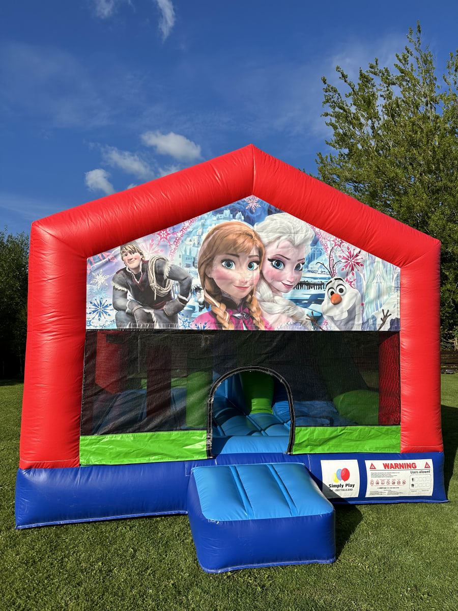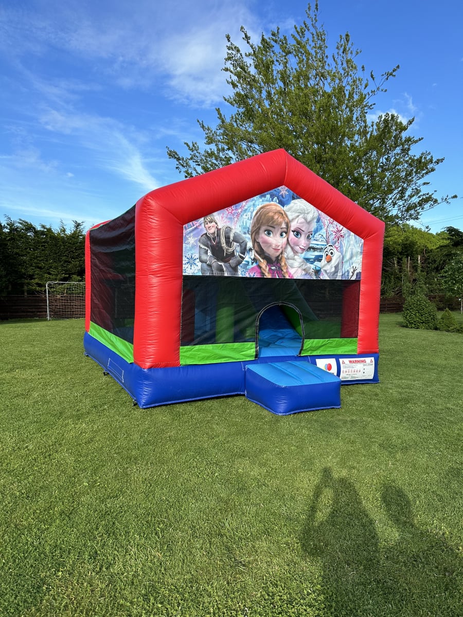 This fantastic covered 16 x13 bouncy castle with slide is great fun for all ages ,climb the stairway to the top of the slide and slide down ,why not have a game of basketball bounce away and take a shot a few bish bash inside will make it even more fun if you miss back and do it all over again ,there is loads of space in this cool bouncing castle also ur castles have a net front which is a great idea because the smaller kids cant fall out.but you can peep inside to make sure they are having fun