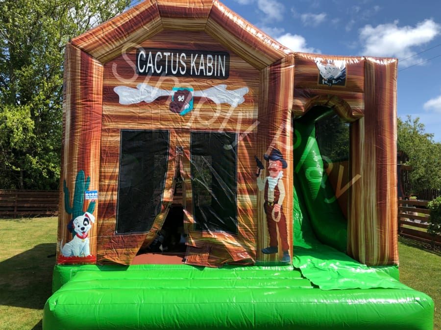 The Cactus Kabin themed combi unit has a bouncy castle which consists of a large bouncy area, a slide to the side. It is suitable for 2 years up and has supervised netting all round so you can keep an eye out on the kids. This unit is fully covered, so don't worry about the rain! This castle will guarantee your party will be a success. It is suitable for girls and boys